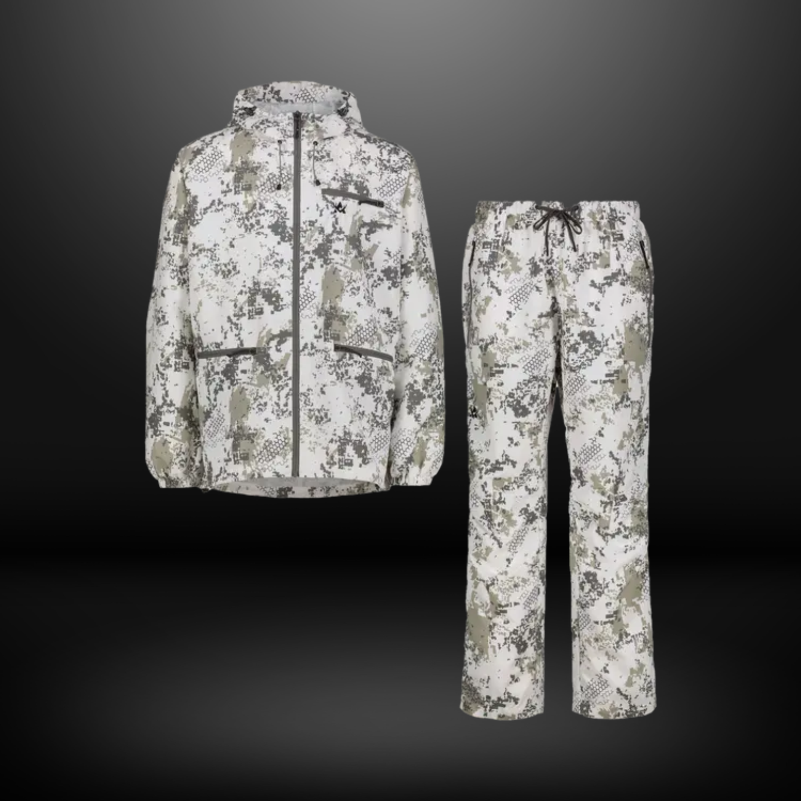 Dieses leichte Set ist speziell für den Einsatz im Winter entworfen und kann über einem Jagdanzug getragen werden. Die Jacke verfügt über drei separate Taschen zum Verstauen von Gegenständen. An den Seiten der Hose befinden sich 2 Belüftungsreißverschlüsse, wodurch die Hose darunter erreicht werden kann. Aus strapazierfähigem und geräuscharmem Ripstop-Material. Die Hose besitzt einen Gummizug mit Kordelzug.