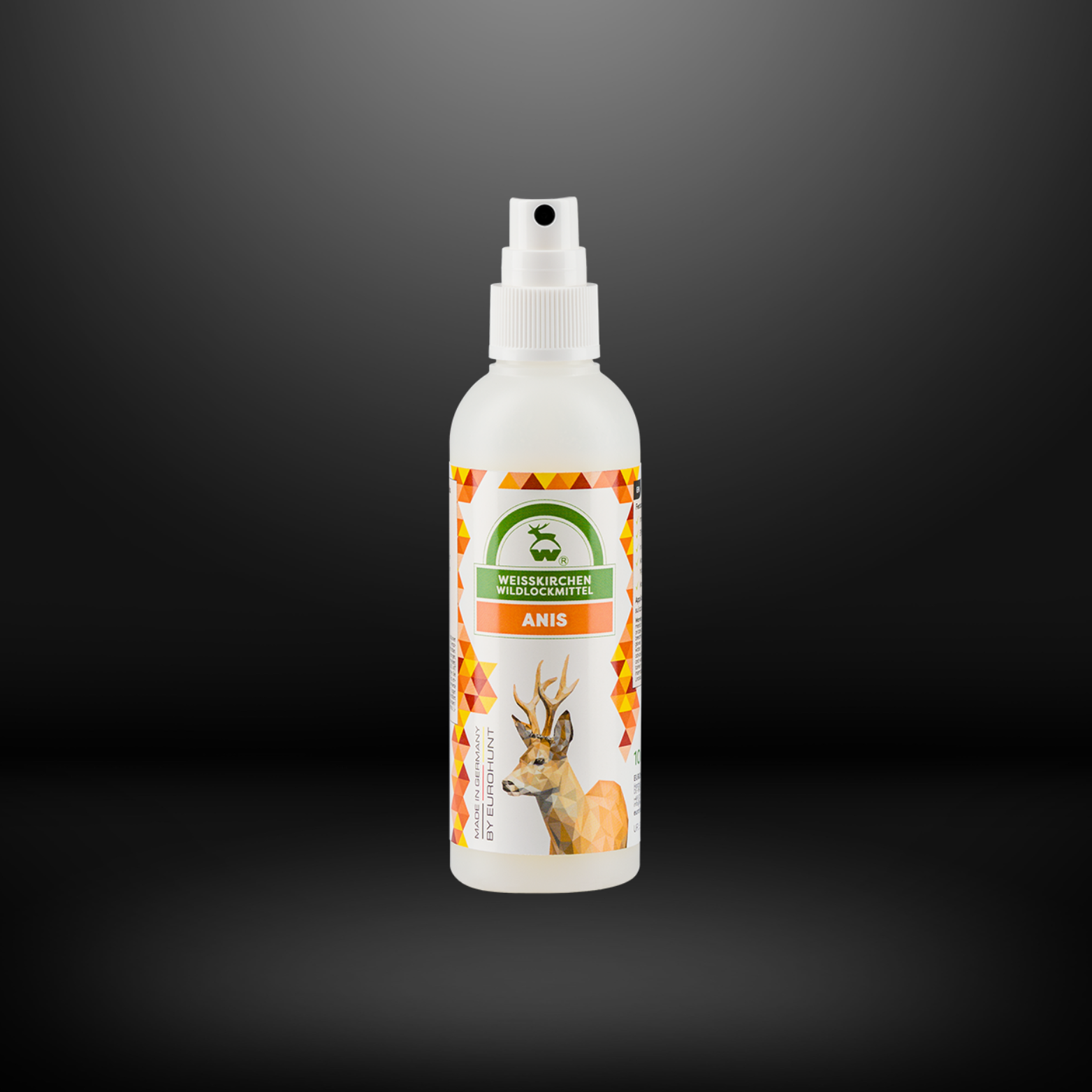 Das bewährte Anisöl lockt mit seinem unwiderstehlichen Aroma fast alle Wildarten über weite Entfernungen zuverlässig an. Die praktische Zerstäuberflasche kann bequem in der Hosentasche bei jedem Reviergang dabei sein. Einfach auf Kirrmaterial, Salzlecken, aufsprühen.