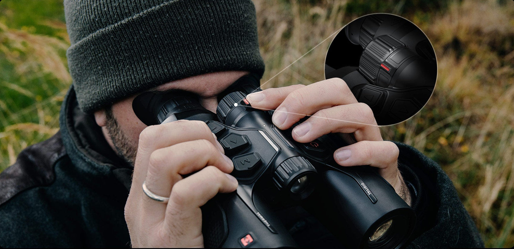 Das neu gestaltete HABROK 4K 2.0 verfügt über einen speziellen Quick-Switch, der ein nahtloses Wechseln zwischen Wärmebild- und Tages-/Nachtsichtkanal ermöglicht. Der Fokusring sorgt für schnelles und präzises Scharfstellen der beiden Kanäle und lässt sich mit einer Hand bedienen. Ein intuitives Design, inspiriert von klassischen Ferngläsern, jetzt noch smarter umgesetzt.