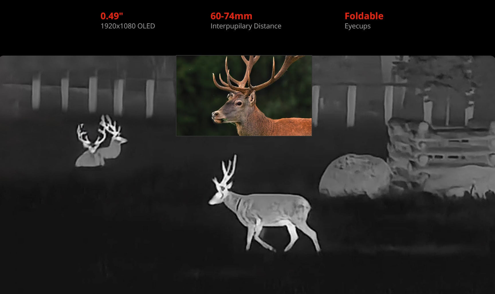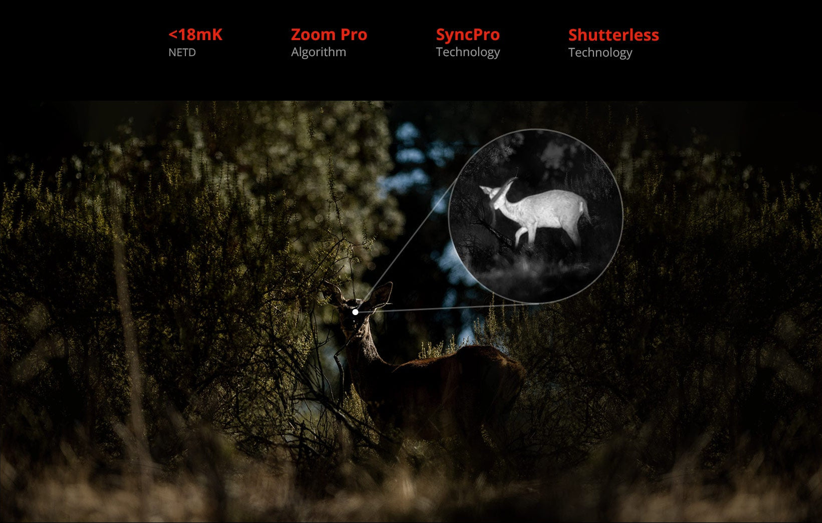 Wenn das Wild in Bewegung ist, verändern sich Entfernung und Präzision sekündlich. Dank verbesserter Bildstabilisierungsalgorithmen sowie der stufenlosen Zoom-Funktion im Wärmebild- sowie Tages-/Nachtsichtkanal lässt sich das Wild auf jeder Zoomstufe einfach detektieren und sicher anzusprechen.