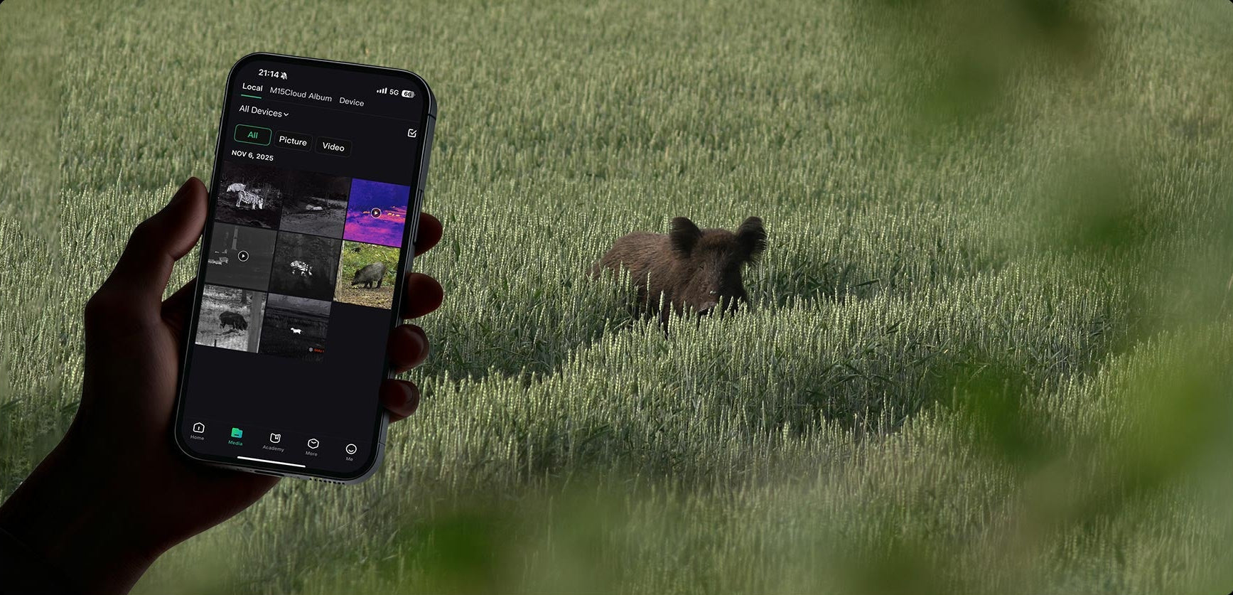 Mit dem Habrok 4K 2.0 kannst du Fotos und Videos aufnehmen, um deine Jagderlebnisse mit Jagdkameraden zu teilen oder besondere Momente für immer festzuhalten und immer wieder neu zu erleben. Deine Highlights werden direkt im lokalen Album gespeichert und lassen sich über die SIGHT App* bequem auf dein Smartphone übertragen.