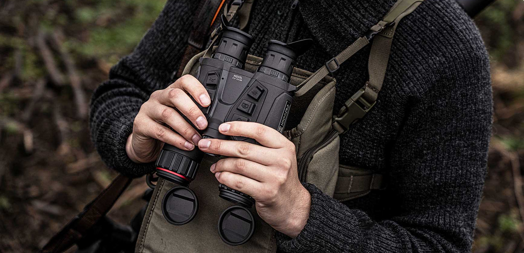 Das Multispektral-Fernglas HABROK4K bietet selbst in schwierigem Gelände beeindruckende Details dank des Fokussierrings sowohl für thermische als auch für digitale Objektive. Selbst mit Handschuhen können Sie extrem präzise scharfstellen