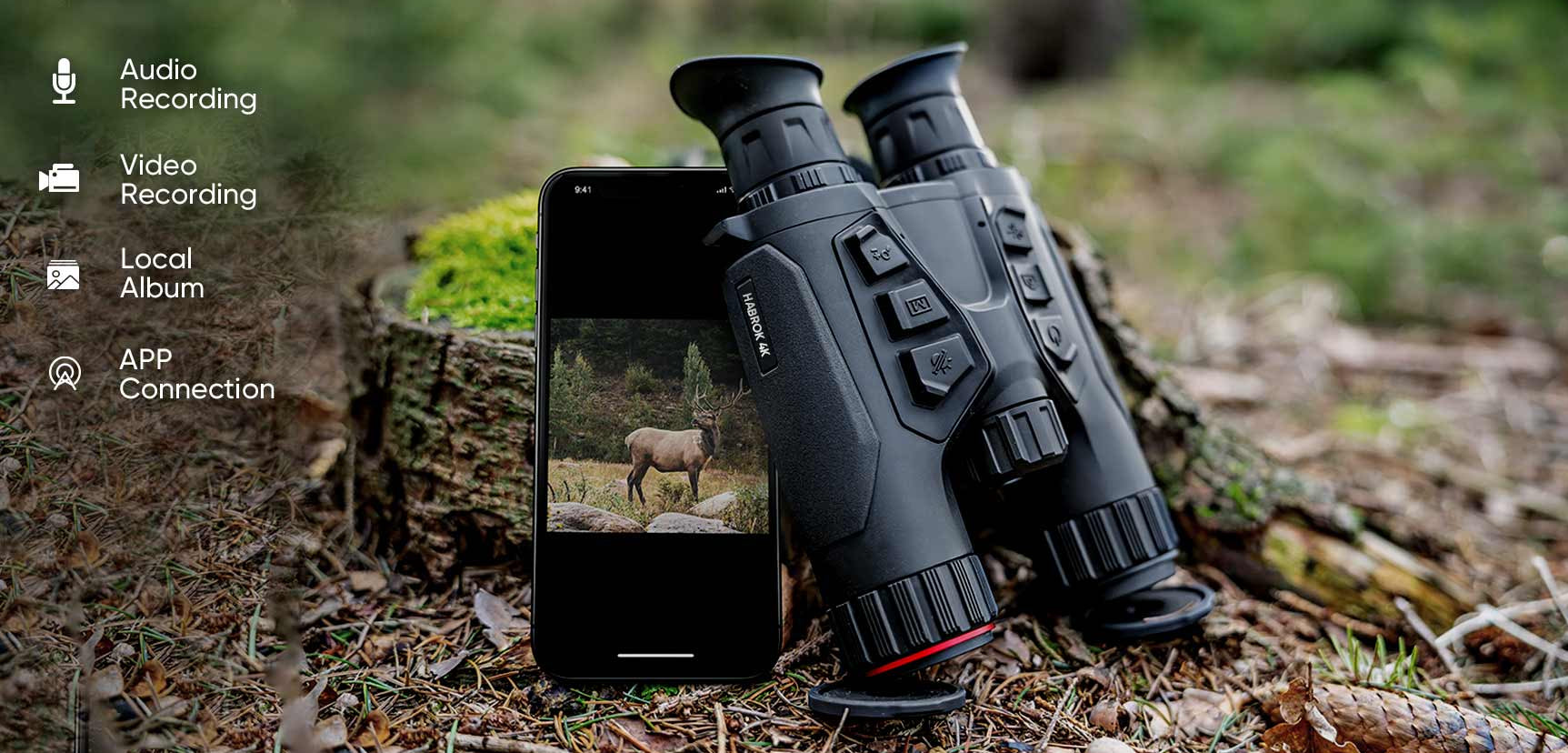 Eine der großen Freuden von Jagdausflügen liegt darin, dass man seine faszinierenden und unvorhergesehenen Erlebnisse sofort festhalten kann. Mit der HIKMICO HABROK 4K können Sie Fotos und Videos von Ihren aufregenden Highlights mit einem einzigen Druck erstellen und sie im Lokalen Album und in der SIGHT APP speichern, damit Ihnen keine schönen Momente entgehen.