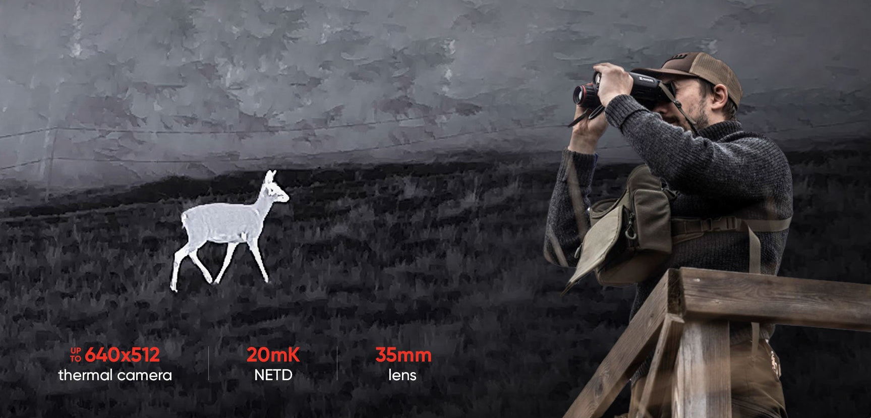 Als Multispektrum-Fernglas bietet die Wärmebildkamera des HABROK 4K die Möglichkeit, durch die Tarnung von Tieren zu sehen und das Wärmesignal des Tieres auch dann zu präsentieren, wenn es sich zwischen Büschen oder Blättern befindet. Dies ermöglicht ein schnelles Scannen und eine effiziente Suche in der offenen Wildnis. Darüber hinaus kann HABROK 4K mit einer Wärmebildkamera mit bis zu 640x512 und 20mK sowohl das Wild als auch die Umgebung erfassen, ohne dass Details verloren gehen.