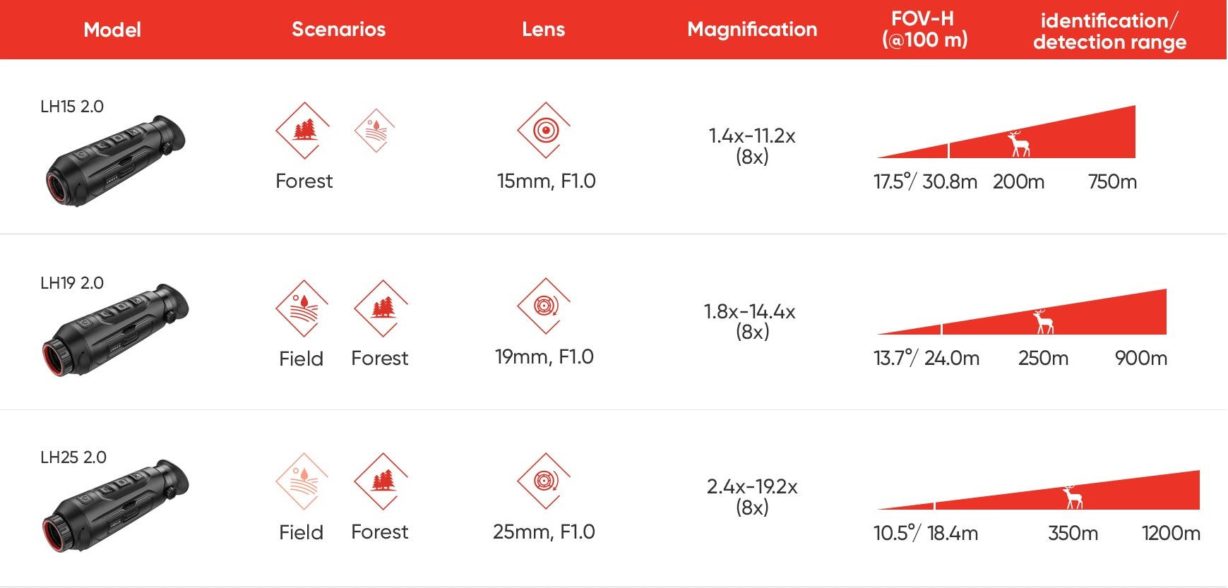 Die Wärmebildkamera Lynx LH25 2,0 ausgestattet mit einem leistungsstarken 25-Millimeter-Objektiv und einem fortschrittlichen 384-Sensor mit einem Pixelabstand von 12 Mikrometern, erfasst die HIKMCRO LYNX LH25 2.0 sehr detaillierte Bilder auf kurze und mittlere Entfernungen, insbesondere mit einer hohen thermischen Empfindlichkeit von NETD < 20 mK. Mit ihren aussergewöhnlichen Fähigkeiten kann sie auf Entfernungen von bis zu 1200 Metern effektiv detektieren.