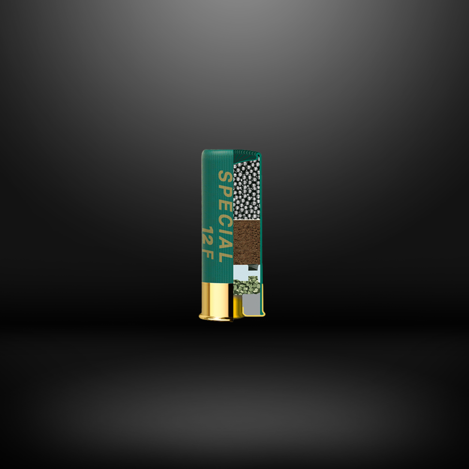 Bei der Special 12 F-Munition wurde besonderes Augenmerk auf die kleineren Schrotkörner gelegt. Der Faserpfropfen, kombiniert mit der H-Scheibe, bewirkt eine besonders gleichmässige, eher grossflächige Deckung und eine bessere Trefferquote auf kleines Wild.