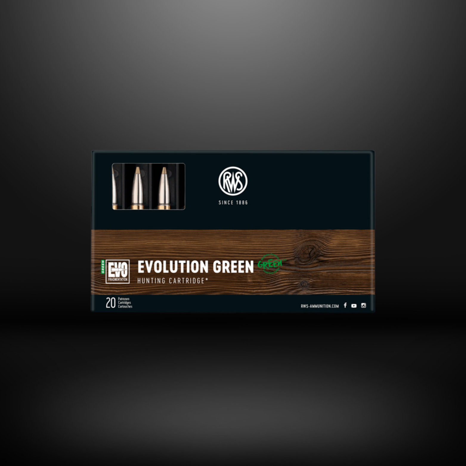 Das RWS EVOLUTION GREEN ist ein bleifreies Teilzerlegungsgeschoss mit einer Reihe von aufeinander abgestimmten Konstruktionsmerkmalen. Die Geschosskerne sind aus lebensmittelechtem Zinn. Durch spezielle Vorfragmentierung des vorderen Geschosskerns sowie die Speed-Tip-Geschossspitze erreicht das RWS EVOLUTION GREEN seine überzeugende Geschosswirkung – herausragende Augenblickswirkung auch auf weite Schussdistanzen.
