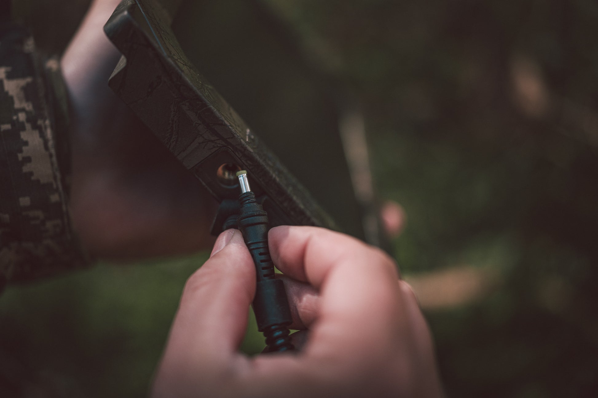 Das Solarpanel kann mit 12V und 6V Wildkameras verwendet werden. Sie erhalten zwei DC-Ausgangskabel, ein 12V-Kabel (links) und ein 6V-Kabel mit Spannungswandler (rechts). SEISSIGER-Kameras verwenden die niedrigere Spannung von 6V; viele andere Wildkameras arbeiten mit 12V und verwenden das linke DC-Kabel. Die Kabellänge beträgt 150cm. Um das Solarpanel mit der Kamera zu verbinden, wählen Sie das passende Kabel aus. Auf einer Seite des Kabels befindet sich unterhalb des Steckers ein Gewinde. Diese Seite gehört in das Solar Panel. Öffnen Sie die linke Gummiabdeckung und schrauben Sie den Stecker vorsichtig in das Innengewinde des Solar Panels. Bitte achten Sie darauf, dass Sie das Kabel nicht zu fest einschrauben, da Sie sonst das Gewinde am Kabel beschädigen könnten.